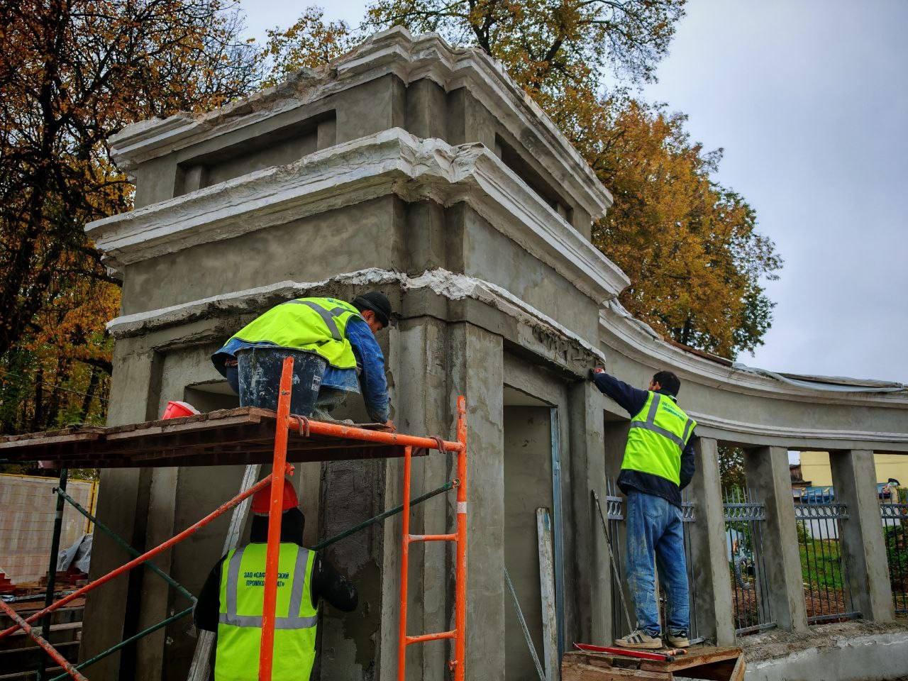«В рамках капитального ремонта на входной группе укреплен фундамент, проведена частичная перекладка кирпичной кладки, сделано усиление несущих конструкций. Решен вопрос с водоотведением в пилонах — доступ влаги внутрь конструкций закрыт, проведена гидроизоляция и вентиляция. Такие меры позволят сохранить конструкции сухими и предотвратить их разрушение», — рассказали в пресс-службе городской администрации.