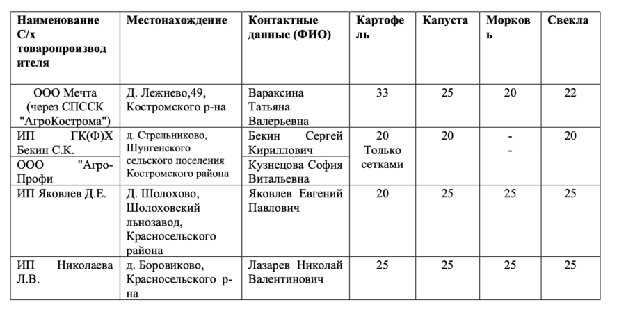 Кроме того, овощи можно купить непосредственно у фермеров Костромского и Красносельского районов.