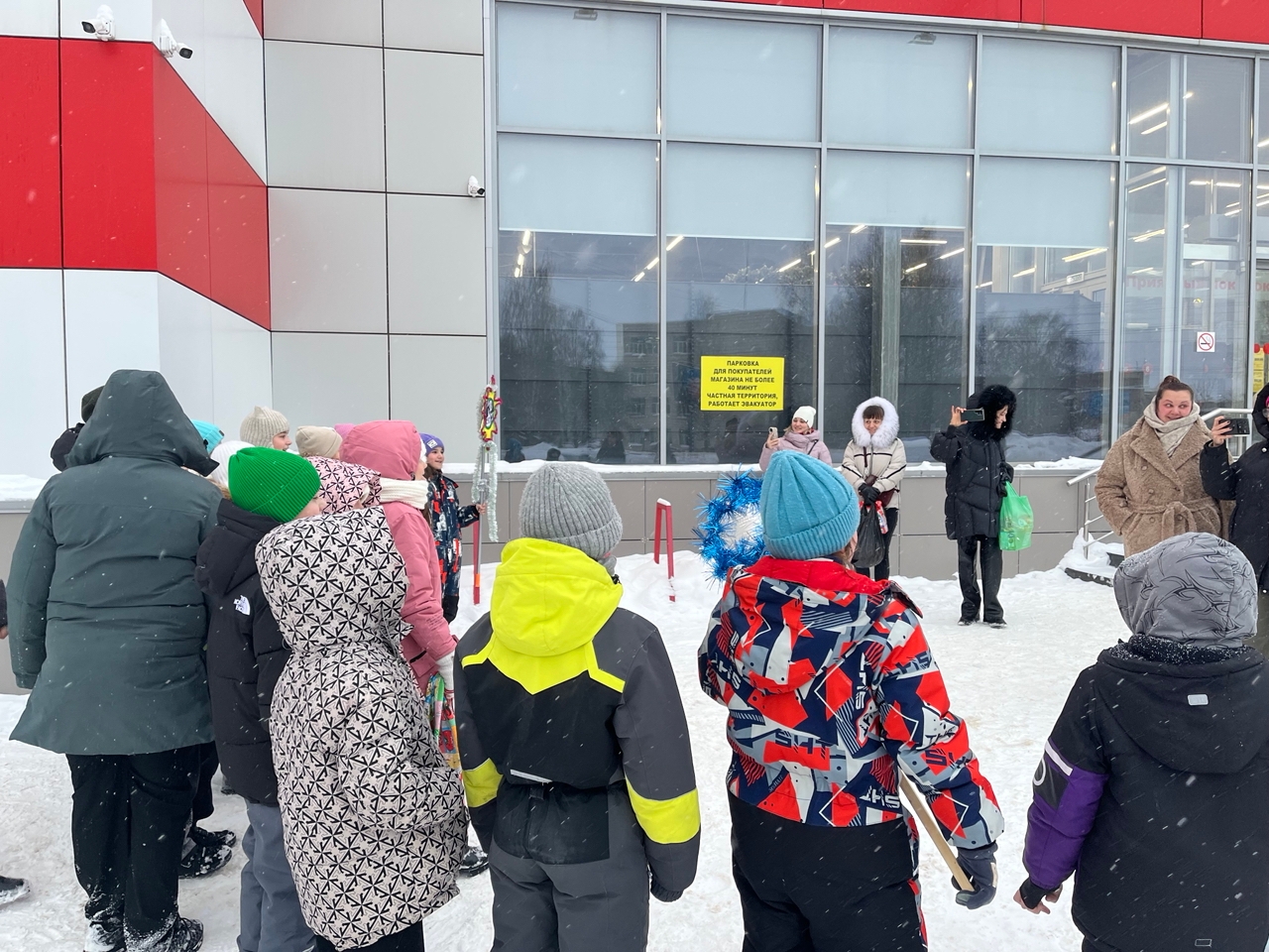 Ребята выбрали самые людные места — площадки у магазинов и почты. Дружным хором они исполнили рождественские песни и задорные колядки, создав вокруг атмосферу старинного зимнего праздника.