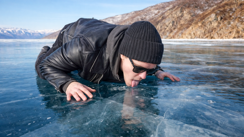 Напомним, видео с артистом, который лижет лёд знаменитого озера, разлетелось по всему интернету зимой этого года.