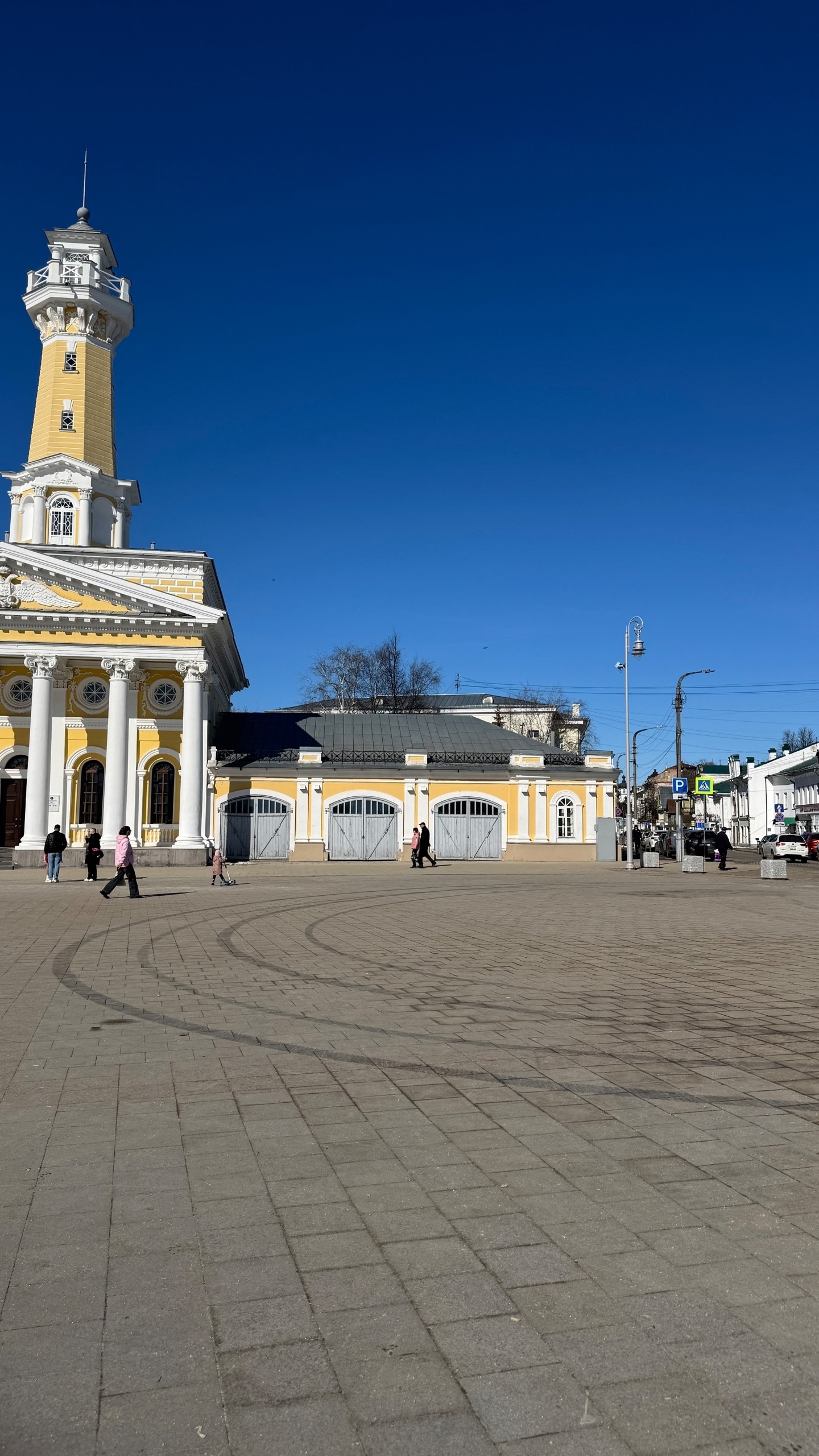 Черные следы от колес на светлой плитке площадки у Каланчи горожане увидели в выходные. Фото появились в соцсетях.