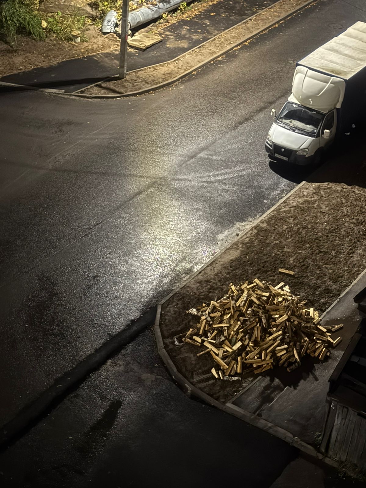 Кто и зачем заказал дрова к многоквартирному дому, неизвестно, но соседи, мягко говоря, удивляются и шутят, что в доставке кто-то, видимо, нажал галочку «оставить заказ у двери». Правда туда его почему-то не донесли.