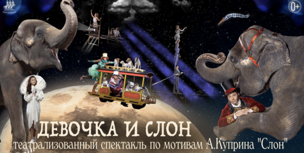 Это нашумевший на всю страну театрализованный спектакль с участием гигантов суши для детей и взрослых по мотивам рассказа Александра Куприна «Слон». Первая в истории Российской государственной цирковой компании коллаборация цирка и театра. Тонны декораций, необычные спецэффекты, единая сюжетная линия, дизайнерские костюмы и артисты мирового уровня. Вас «ДЕВОЧКА И СЛОН» ждут легендарные слоны династии Дементьевых — Корниловых, которые участвовали в многочисленных съемках советского и российского кино, объездили весь мир и теперь будут радовать зрителя своими трюками, занесенными в КНИГУ РЕКОРДОВ.